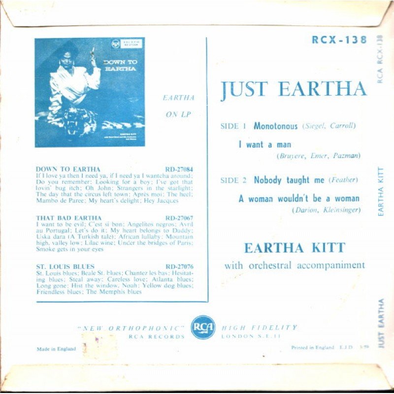 Eartha Kitt - Just Eartha (7", EP, Tri)