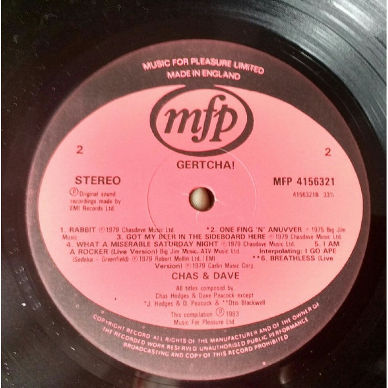 | Track List | A1 Gertcha A2 Strummin' A3 Edmonton Green A4 The Banging In Your Head A5 Massage Parlour A6 Ponders End Allotments Club B1 Rabbit B2 One Fing 'N' Anuvver B3 Got My Beer In The Sideboard Here B4 What A Miserable Saturday Night B5 I Am A Rocker (Live Version) B6 Brea |
