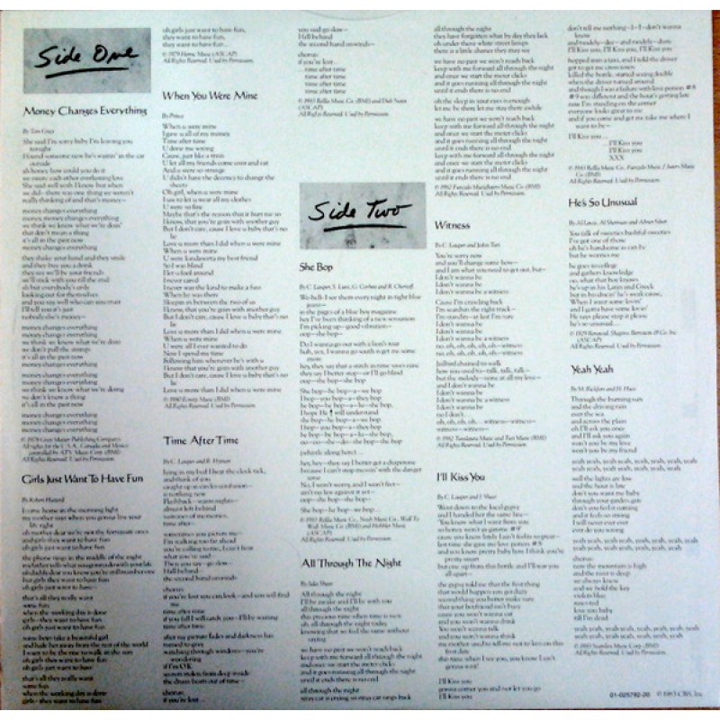 | Track List | A1 Money Changes Everything A2 Girls Just Want To Have Fun A3 When You Were Mine A4 Time After Time B1 She Bop B2 All Through The Night B3 Witness B4 I'll Kiss You B5 He's So Unusual B6 Yeah Yeah |