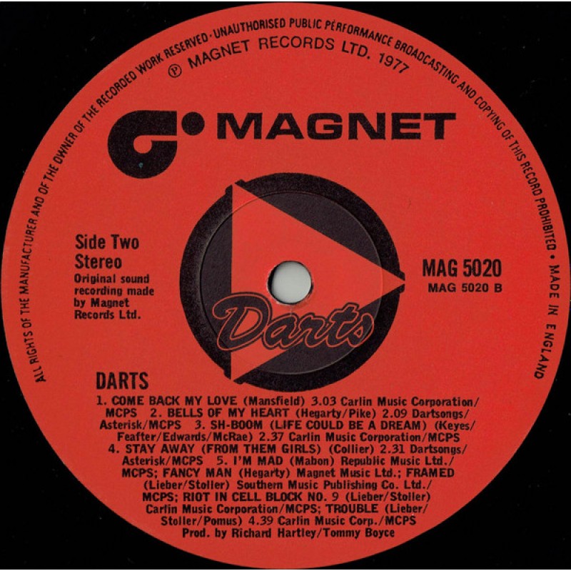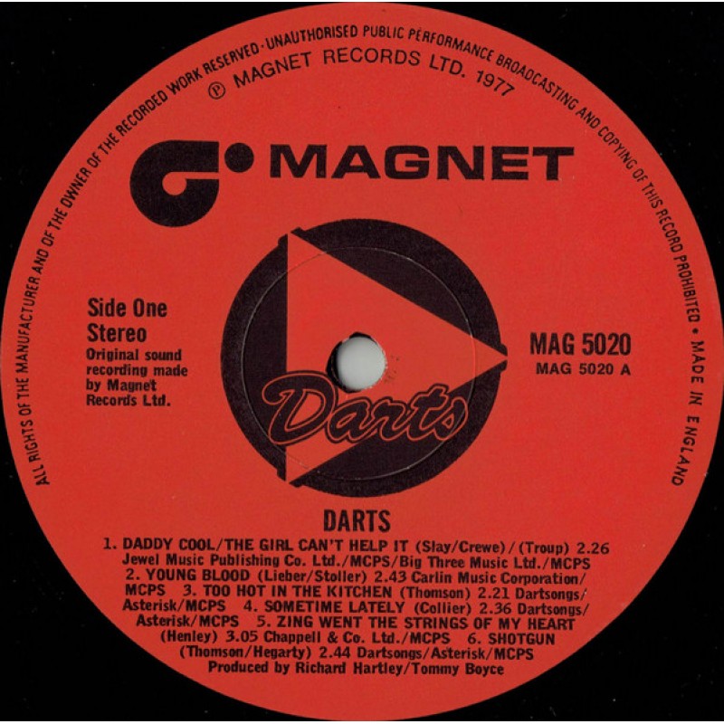 Recorded at: Olympic Studios, Barnes, August '77.Comes with or without orange coloured hype sticker with text : Includes hit 'DADDY COOL'&'COME BACK MY LOVE'