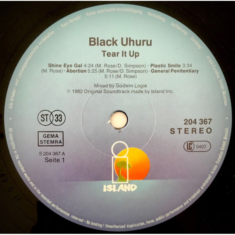 | Track List | A1 Shine Eye Gal A2 Plastic Smile A3 Abortion A4 General Penitentiary B1 Guess Who's Coming To Dinner B2 I Love King Selassie B3 Sinsemilla B4 Leaving For Zion |