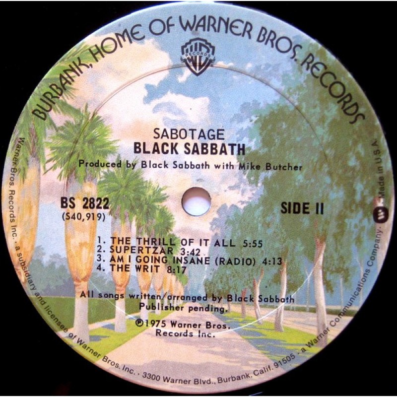 | Track List | A1 Hole In The Sky A2 Don't Start (Too Late) A3 Symptom Of The Universe A4 Megalomania B1 The Thrill Of It All B2 Supertzar B3 Am I Going Insane (Radio) B4 The Writ |