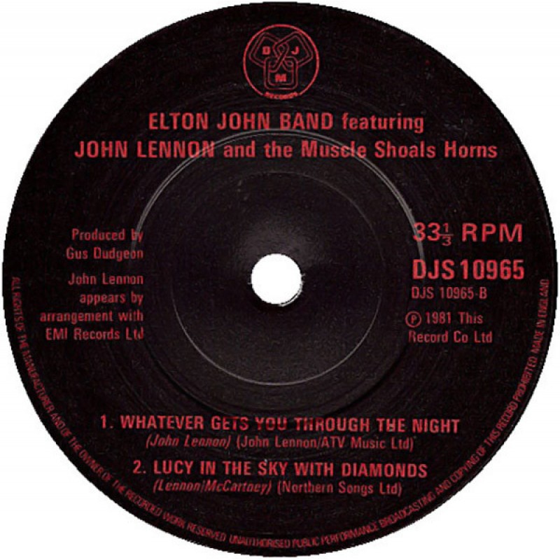 | Track List | A I Saw Her Standing There B1 Whatever Gets You Through The Night B2 Lucy In The Sky With Diamonds |