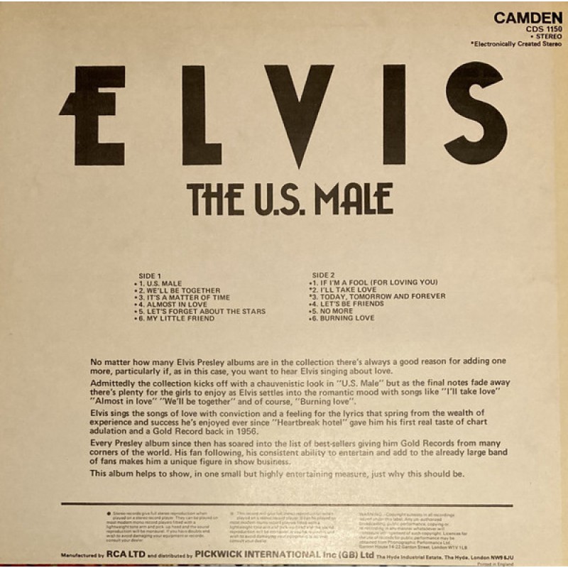 | Track List | A1 U.S. Male A2 We'll Be Together A3 It's A Matter Of Time A4 Almost In Love A5 Let's Forget About The Stars A6 My Little Friend B1 If I'm A Fool (For Loving You) B2 I'll Take Love B3 Today, Tomorrow And Forever B4 Let's Be Friends B5 No More B6 Burning Love |