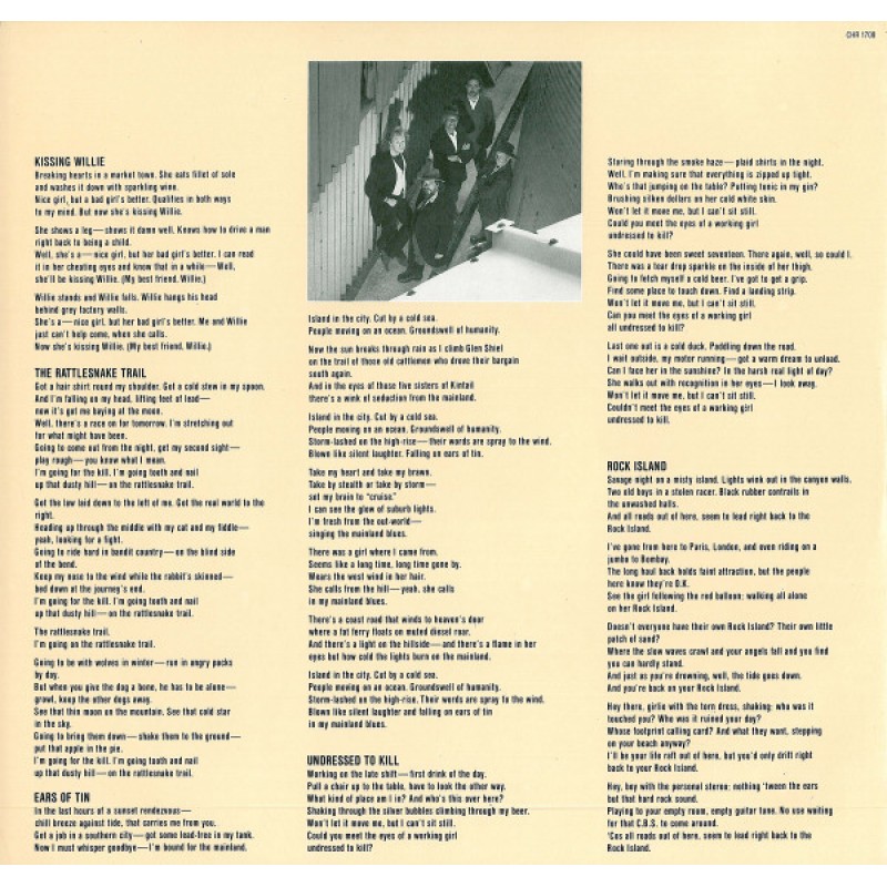 | Track List | A1 Kissing Willie A2 The Rattlesnake Trail A3 Ears Of Tin A4 Undressed To Kill A5 Rock Island B1 Heavy Water B2 Another Christmas Song B3 The Whalers Dues B4 Big Riff And Mando B5 Strange Avenues |