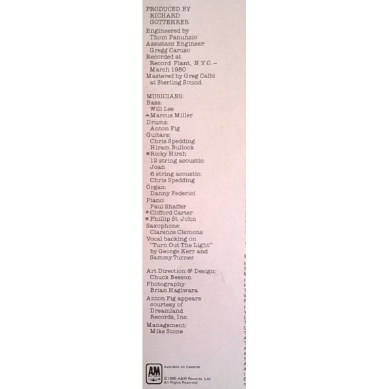 Released with a full colour inner sleeve , one side showing a picture of the artist. © 1980 A & M Records,Ltd. AMLH 64809 on other side.