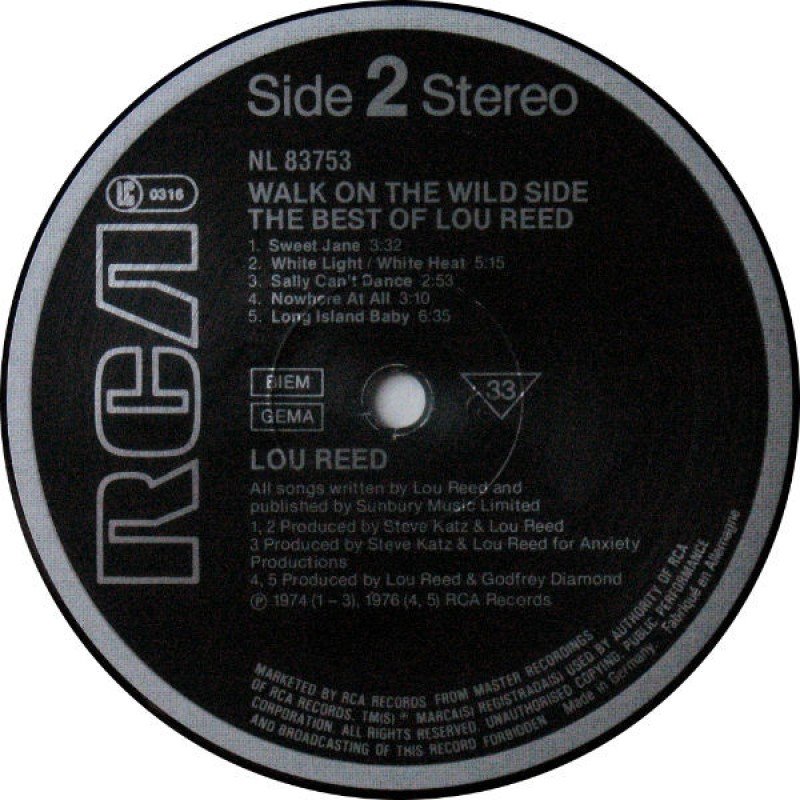 | Track List | A1 Satellite Of Love A2 Wild Child A3 I Love You A4 How Do You Think It Feels A5 New York Telephone Conversation A6 Walk On The Wild Side B1 Sweet Jane B2 White Light/White Heat B3 Sally Can't Dance B4 Nowhere At All B5 Coney Island Baby |