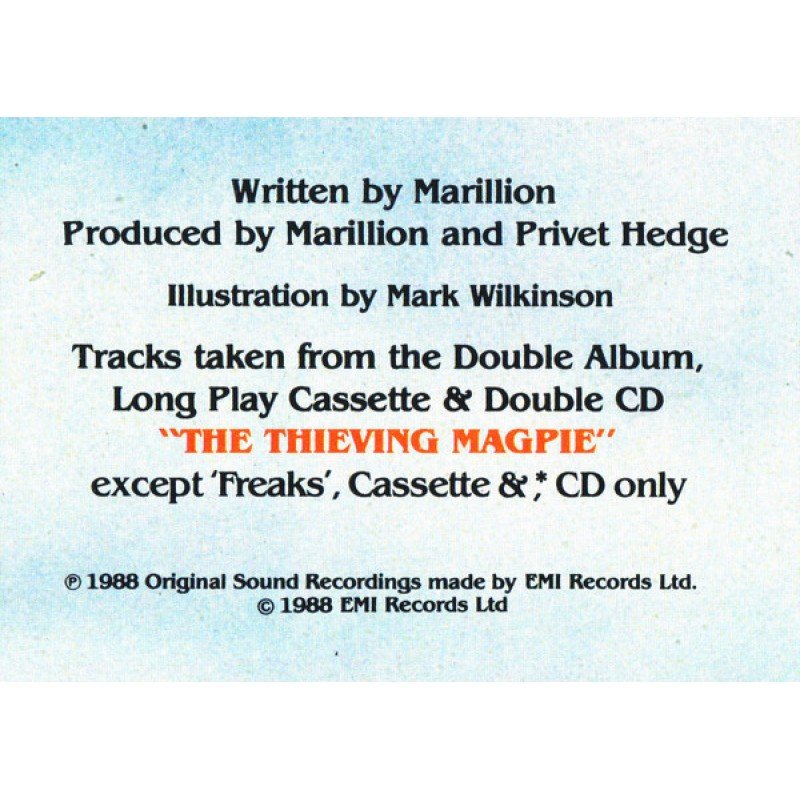 | Track List | A1 Freaks (Live) A2 Kayleigh (Live) B1 Childhoods End? (Live) B2 White Feather (Live) |