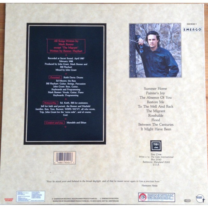 | Track List | A1 Summer Home A2 Painter's Joy A3 The Absence Of You A4 Restore Me A5 To The Well And Back B1 The Migrant B2 Rosshalde B3 Flood B4 Between The Centuries B5 It Might Have Been |