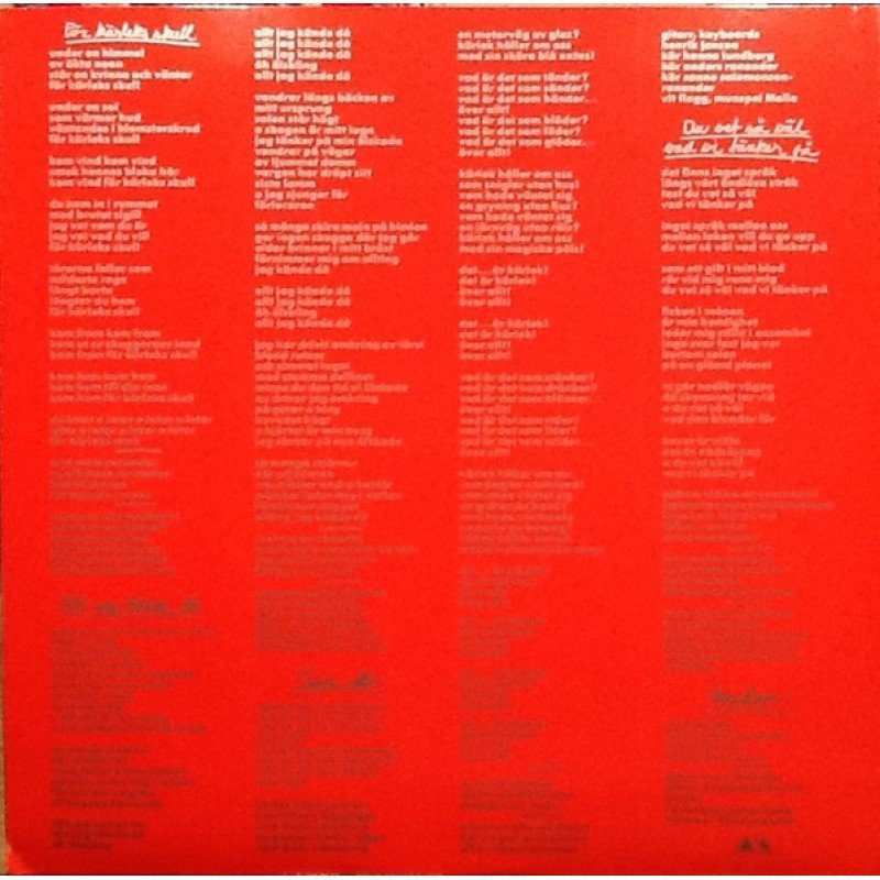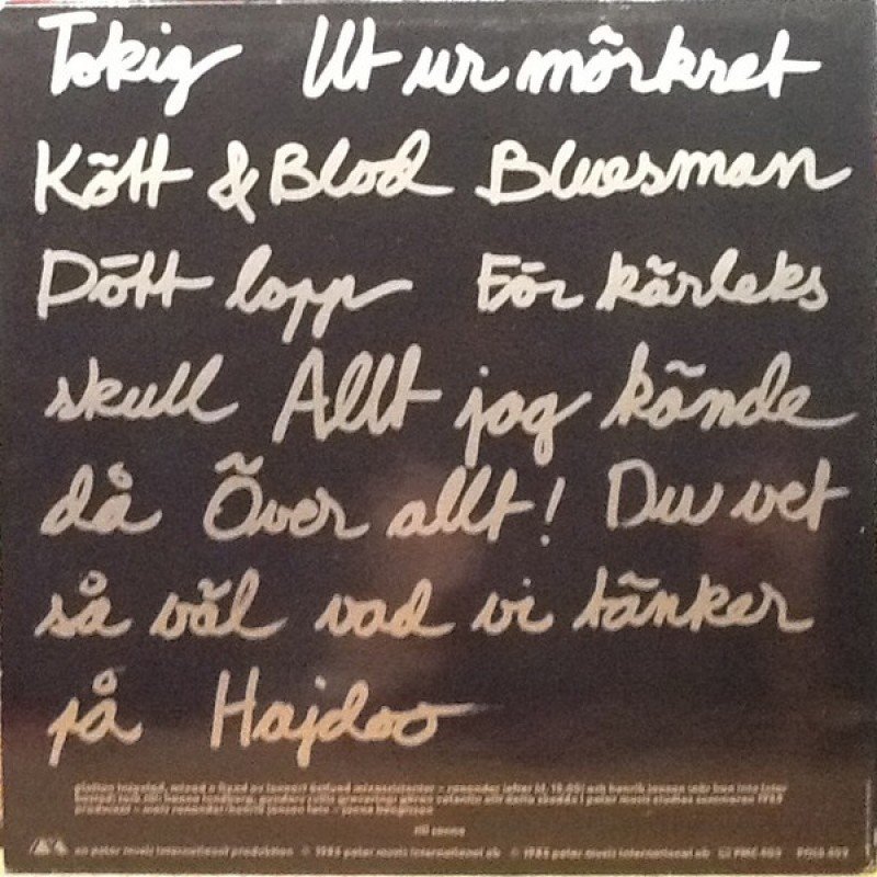 | Track List | A1 Tokig A2 Ut Ur Mörkret A3 Kött & Blod A4 Bluesman A5 Dött Lopp B1 För Kärleks Skull B2 Allt Jag Kände Då B3 Över Allt! B4 Du Vet Så Väl Vad Vi Tänker På B5 Hajdoo |