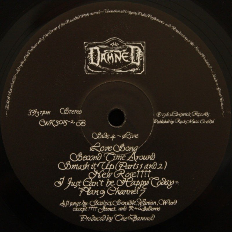 Live Side [D] recorded (with no overdubs whatsoever!) [at Shepperton Studios] in front of the Damned Fan Club.