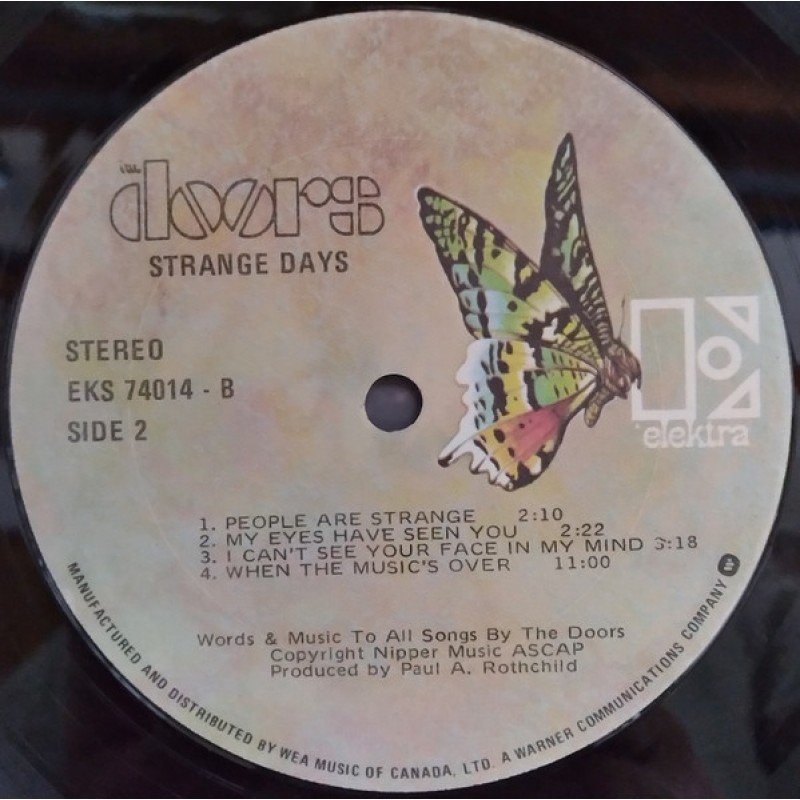 Track List | A1 Strange Days A2 You're Lost Little Girl A3 Love Me Two Times A4 Unhappy Girl A5 Horse Latitudes A6 Moonlight Drive B1 People Are Strange B2 My Eyes Have Seen You B3 I Can't See Your Face In My Mind B4 When The Music's Over |