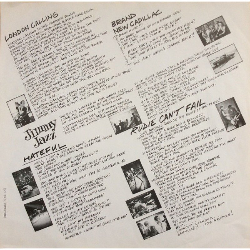 Track List | A1 London Calling A2 Brand New Cadillac A3 Jimmy Jazz A4 Hateful A5 Rudie Can't Fail B1 Spanish Bombs B2 The Right Profile B3 Lost In The Supermarket B4 Clampdown B5 The Guns Of Brixton C1 Wrong 'Em Boyo C2 Death Or Glory C3 Koka Kola C4 The Card Cheat |