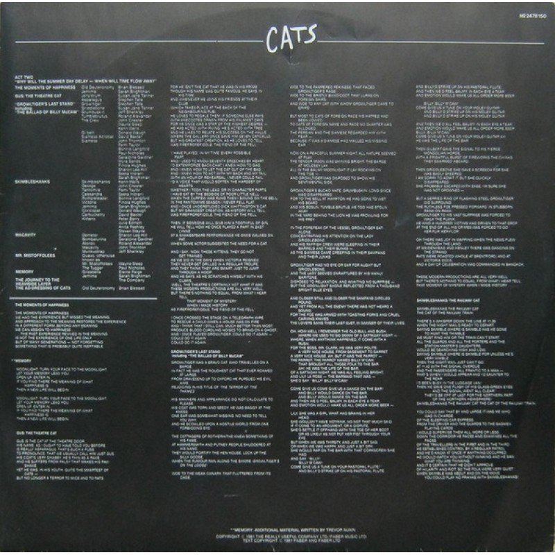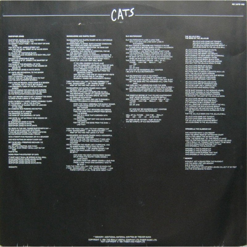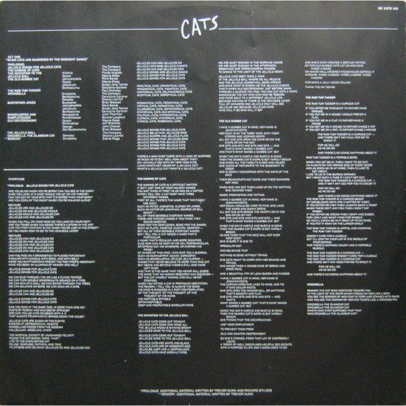 Music By Andrew Lloyd Webber Based On 'Old Possum's Book Of Practical Cats' By T. S. Eliot.