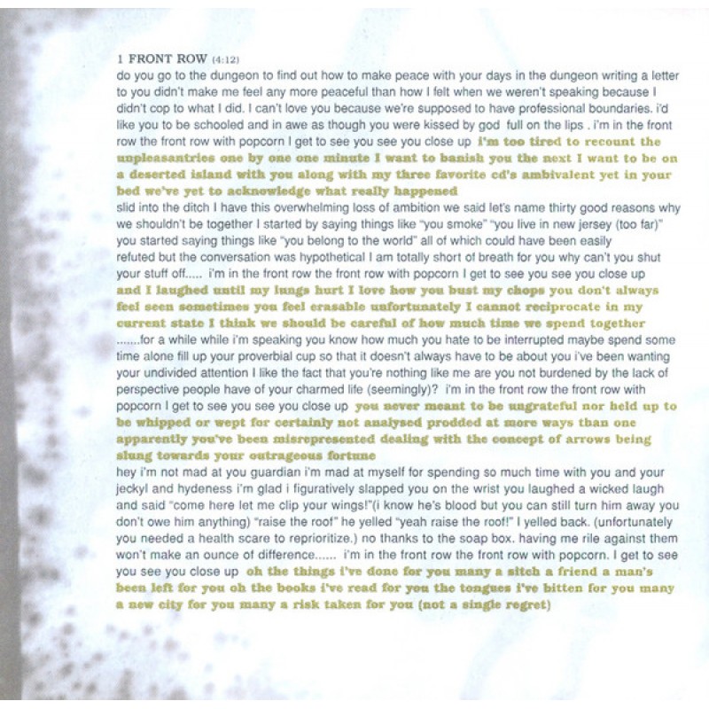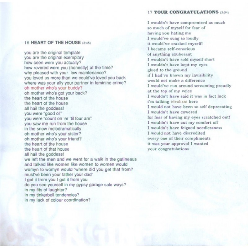 Packaging: Standard jewel case with transparent tray and a 20-page booklet with photos, lyrics and credits.