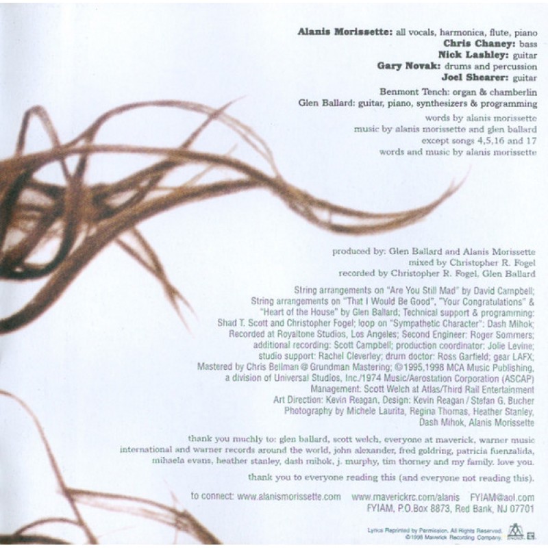 Some copies carry a sticker: "Alanis Morissette | 17 new songs | including "Thank U" | 9362-47094-2" as well as a second sticker: 'BRIT Awards 99 Nominees'.