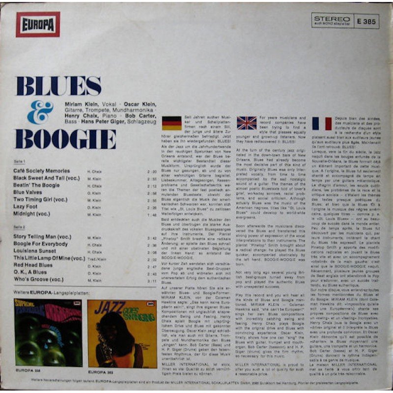 Miriam Klein, Oscar Klein, Henry Chaix*, Bob Carter (2), Hans Peter Giger* - Blues & Boogie (LP)