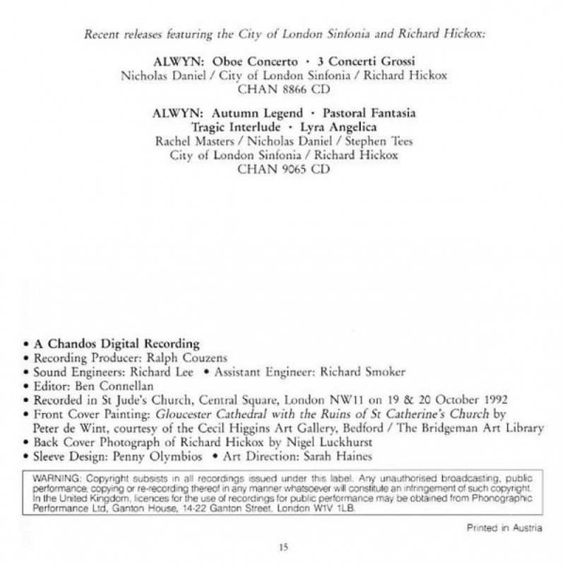 - ℗ 1993 Chandos Records Ltd © 1993 Chandos Records Ltd / Printed in Austria (bottom right)