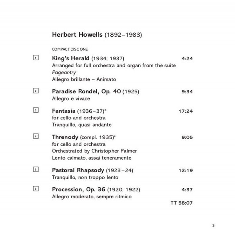 | Track List | 1-1 King's Herald (Arranged For Full Orchestra And Organ, From The Suite "Pageantry") 1-2 Paradise Rondel, Op. 40 1-3 Fantasia For Cello And Orchestra 1-4 Threnody For Cello And Orchestra 1-5 Pastoral Rhapsody 1-6 Procession, Op. 36 The B's, Op. 13 Suite For Orchestra Three Dances, |