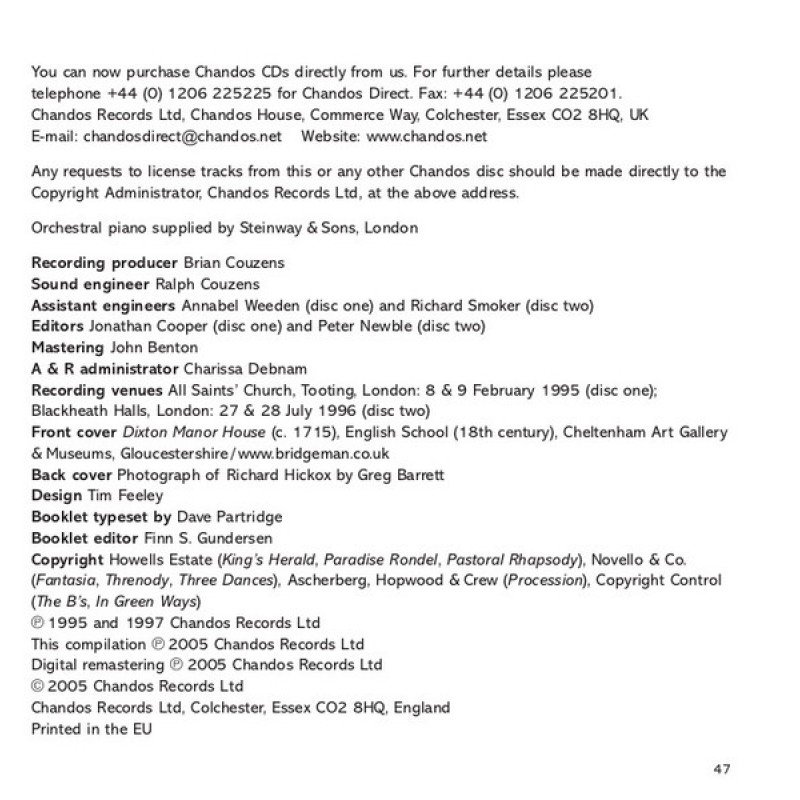Howells* – Yvonne Kenny, Lydia Mordkovitch, Moray Welsh, London Symphony Orchestra, Richard Hickox - Orchestral Works (2xCD, Comp, RM)
