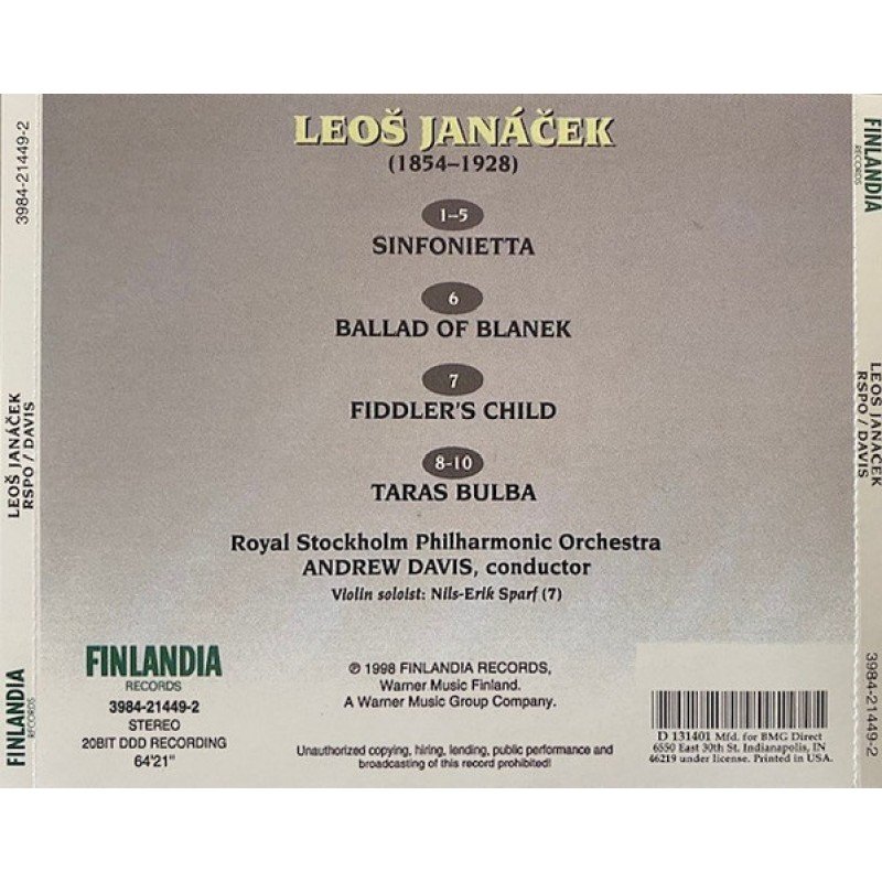 Leoš Janáček, Andrew Davis, Royal Stockholm Philharmonic Orchestra, Nils-Erik Sparf - Janáček: Sinfonietta; Ballad of Blanek; Fiddler's Child; Taras Bulba (CD, Album, Club)