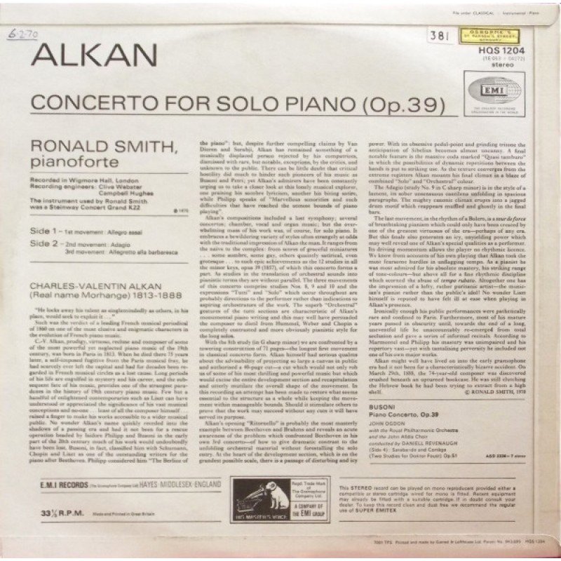 Alkan*, Ronald Smith (4) - Alkan - Concerto For Solo Piano (LP)