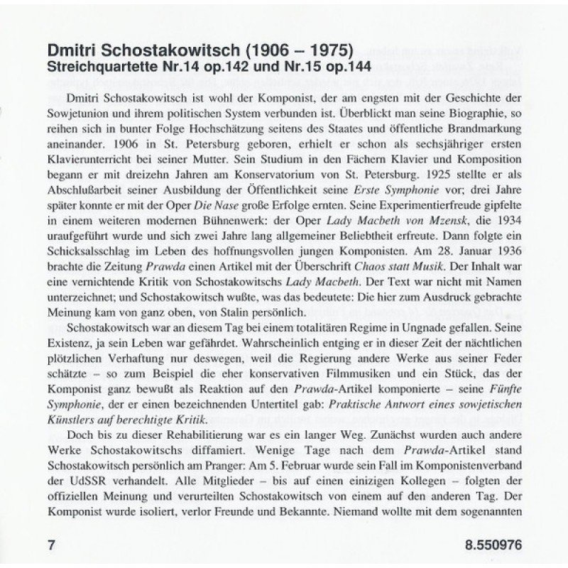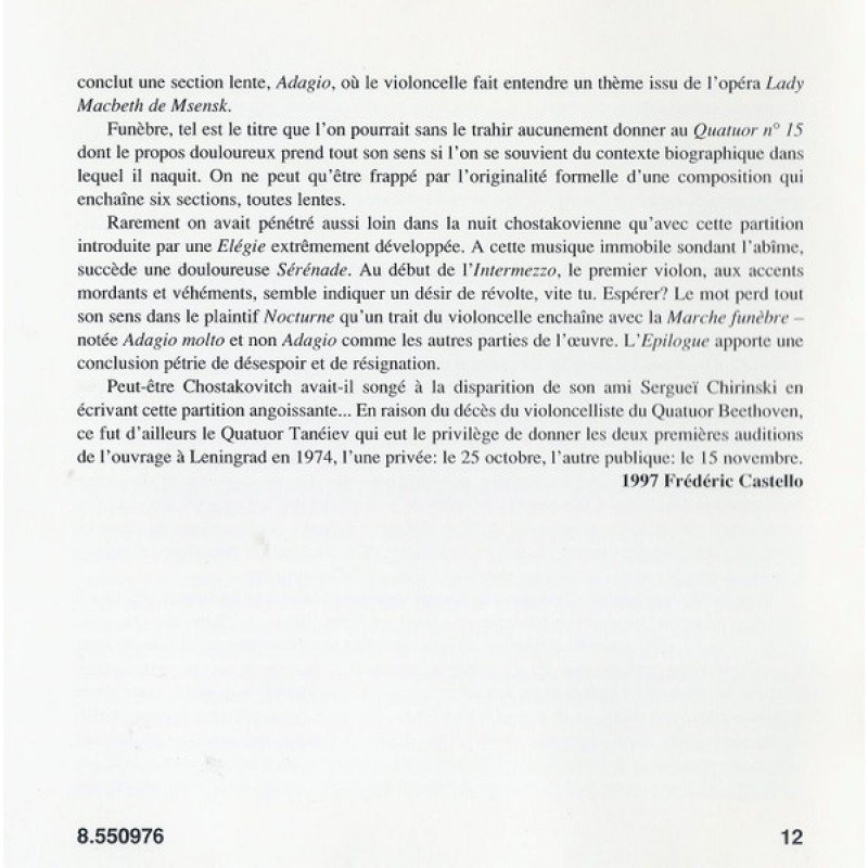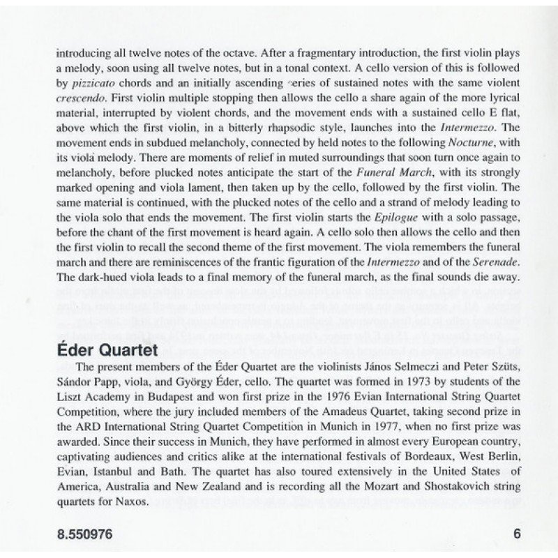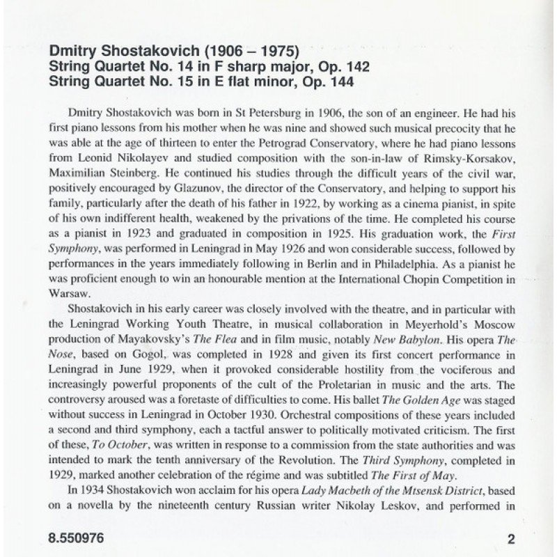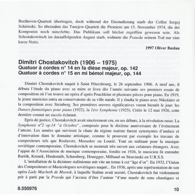 Track List | String Quartet No. 14 In F Sharp Major, Op. 142 String Quartet No. 15 In E Flat Minor, Op. 144 |
