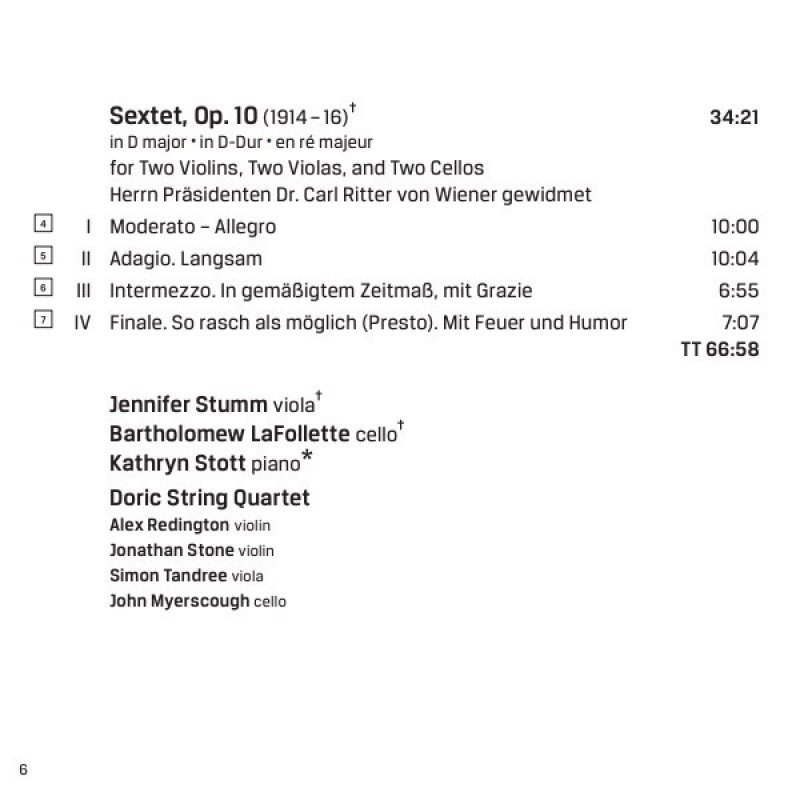 Track List | Piano Quintet In E Major, Op. 15 Sextet, Op. 10 |
