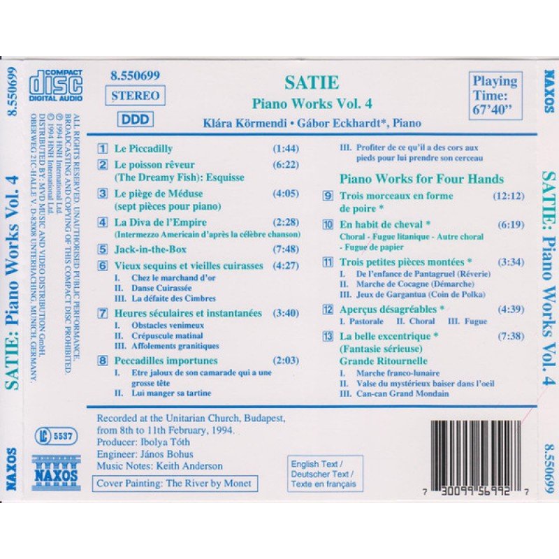 Satie* - Klára Körmendi, Gábor Eckhardt - Piano Works Vol. 4 (CD, Album, RE)