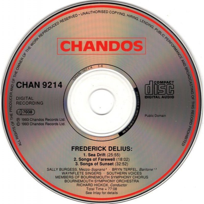 Recorded in association with The Delius TrustRecorded in the Wessex Hall, Poole Arts Centre 27/28 Feb 1993