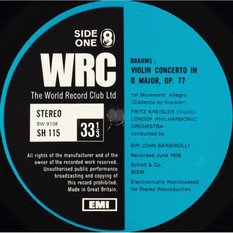 Recorded in London, on the 18th and 22nd June, 1936, by Fritz Kreisler and the London Philharmonic Orchestra