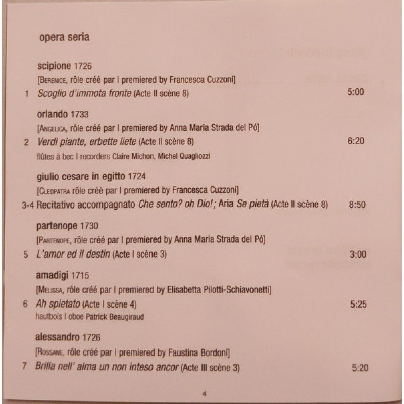 Track List | 1 Scipione 2 Orlando 3/4 Giulio Cesare In In Egitto 5 Partenope 6 Amadigi 7 Allesandro 8 Rodelinda 9 Faramondo 10 Tameriano 11 Deidamia 12 Arianna In Creta |