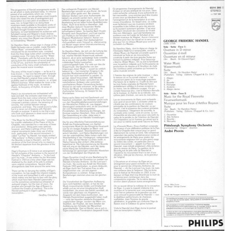 Händel*, André Previn, Pittsburgh Symphony Orchestra - Overture In D Minor / Water Music / Fireworks Music (LP)
