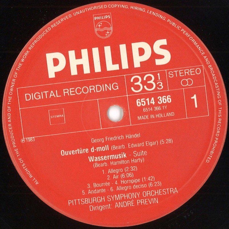 Track List | A1 Overture In D Minor Water Music Suite Music For The Royal Fireworks |