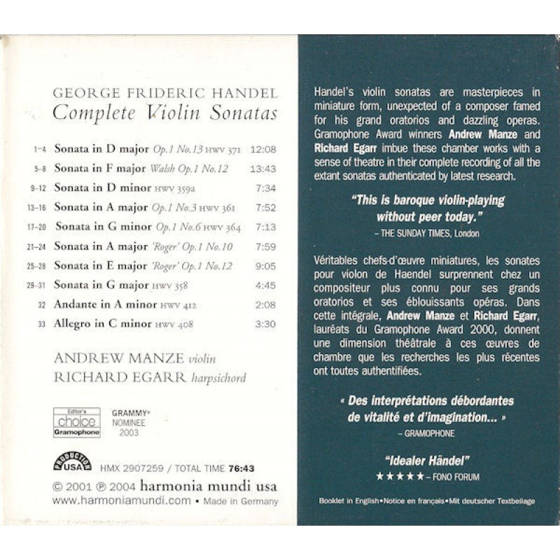 Handel*, Andrew Manze & Richard Egarr - Complete Violin Sonatas (CD, Album)