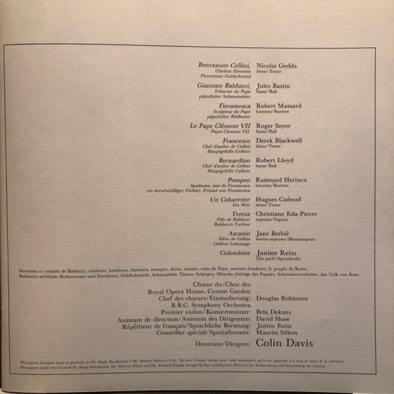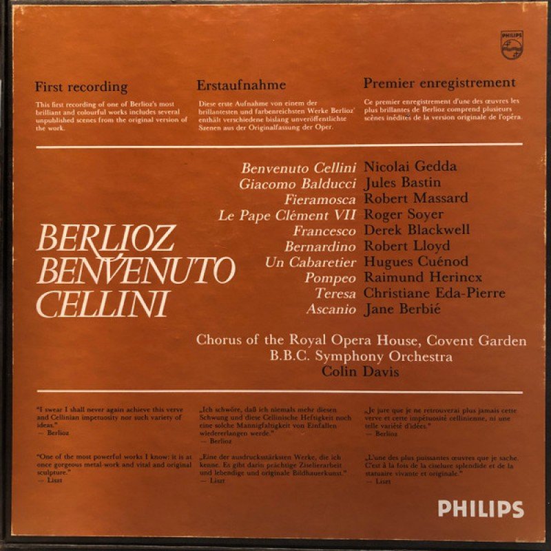 Berlioz* - Gedda*, Eda-Pierre*, Bastin*, Berbié*, Soyer*, Massard*, Colin Davis* - Benvenuto Cellini (4xLP + Box, Album)