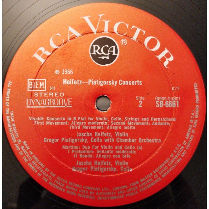 Heifetz* - Piatigorsky*, Pennario*, Arensky*, Vivaldi*, Martinů* - Heifetz-Piatigorsky Concerts with Leonard Pennario and Guests (LP, Album)