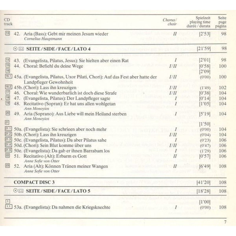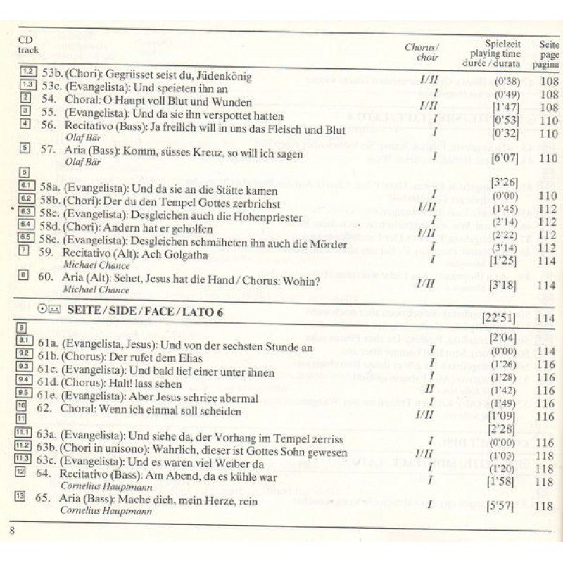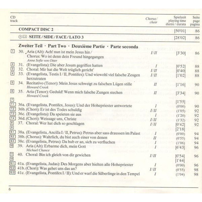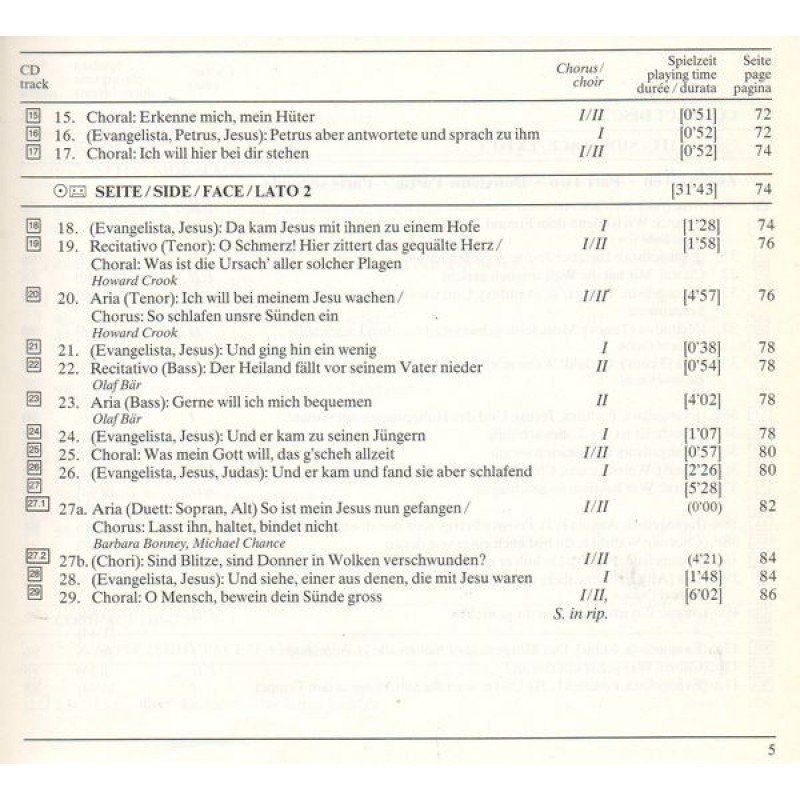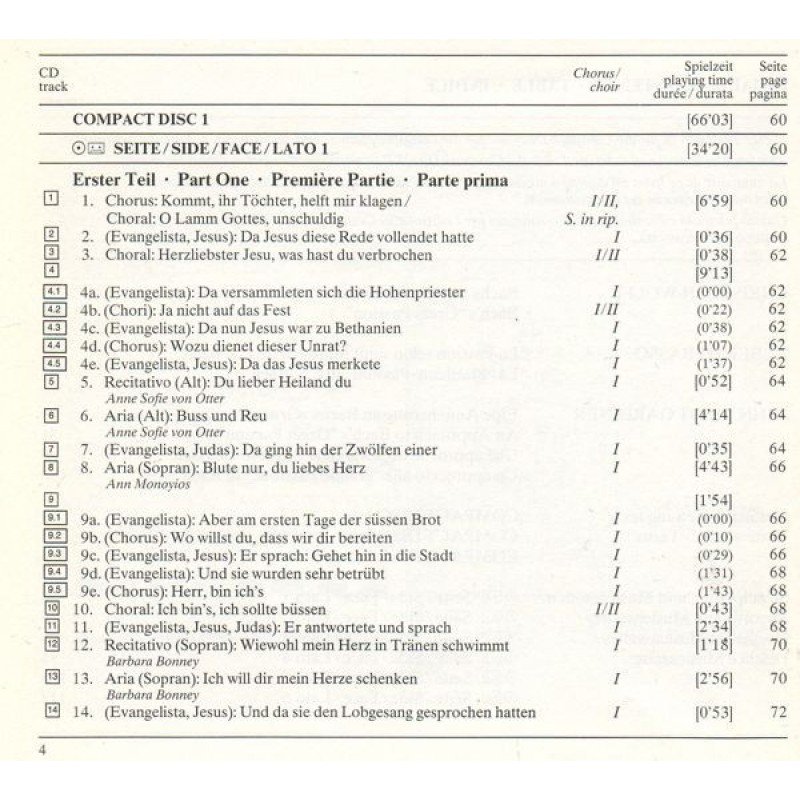 Track List | Erster Teil 1-1 Chorus: Kommt, Ihr Töchter, Helft Mir Klagen / Choral: O Lamm Gottes, Unschuldig 1-2 (Evangelista, Jesus): Da Jesus Diese Rede Vollendet Hatte 1-3 Choral: Herzliebster Jesu, Was Hast Du Verbrochen 1-4a (Evangelista): Da Versammelten Sich Die Hohenpriester 1-4b (Chori): Ja, Nic |