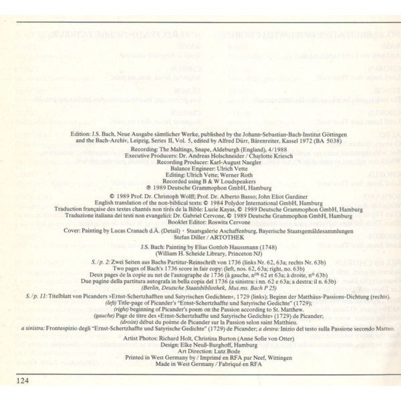 ℗ 1989 Deutsche Grammophon GmbH, Hamburg.Made & printed in West Germany.