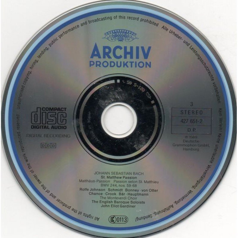 J.S. Bach* - John Eliot Gardiner - St. Matthew Passion = Matthäus-Passion = Passion Selon St Matthieu (3xCD, RE + Box)