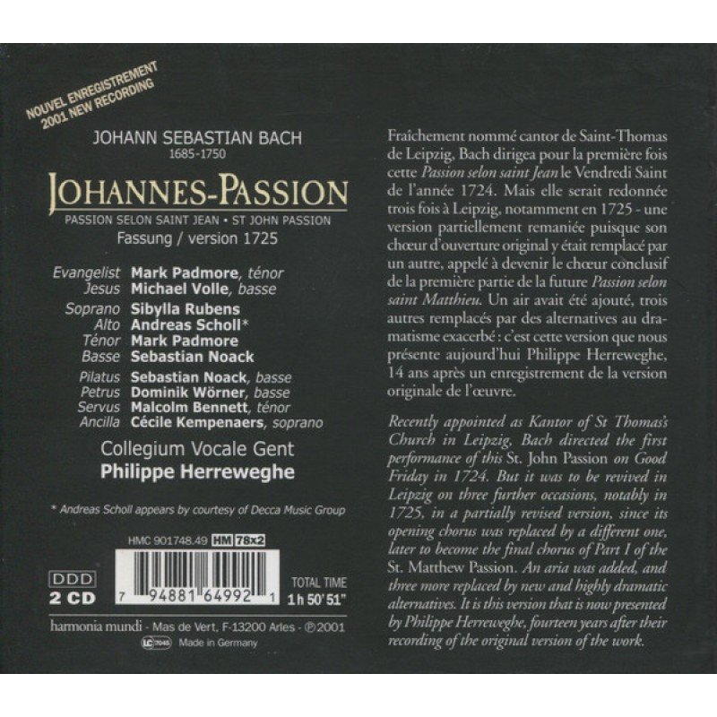 J.S. Bach*, Sibylla Rubens, Andreas Scholl, Mark Padmore, Sebastian Noack, Michael Volle, Collegium Vocale Gent*, Philippe Herreweghe - Johannes-Passion = St John Passion • Passion Selon Saint Jean (2xCD, Album + Box)