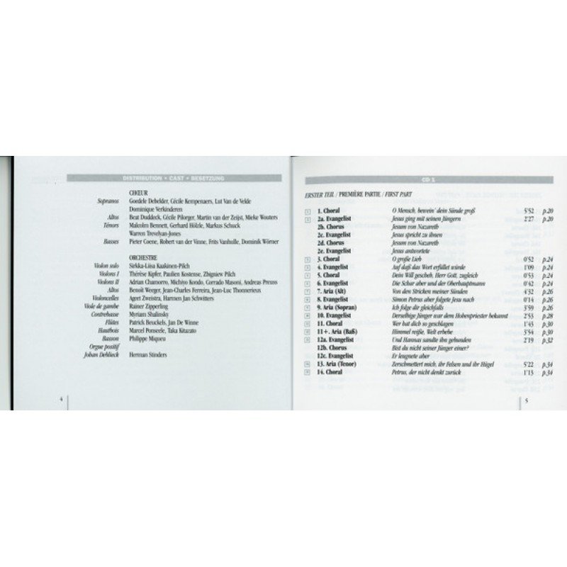 Track List | Johannes-Passion, BWV 245 (BC D2) Erster Teil / Première Partie / First Part 1-1 1. Choral: O Mensch, Bewein' Dein Sünde Groß 1-2.1 2a. Evangelist: Jesus Ging Mit Seinen Jüngern 1-2.2 2b. Chorus: Jesum Von Nazareth 1-2.3 2c. Evangelist: Jessu Spricht Zu Ihnen 1-2.4 2d. Chorus: Jesum |