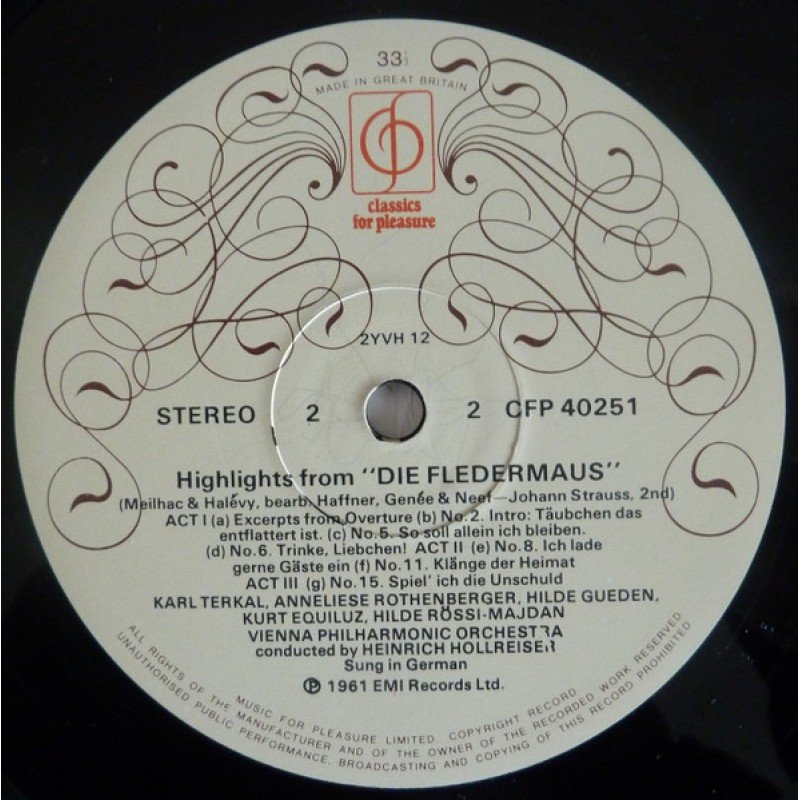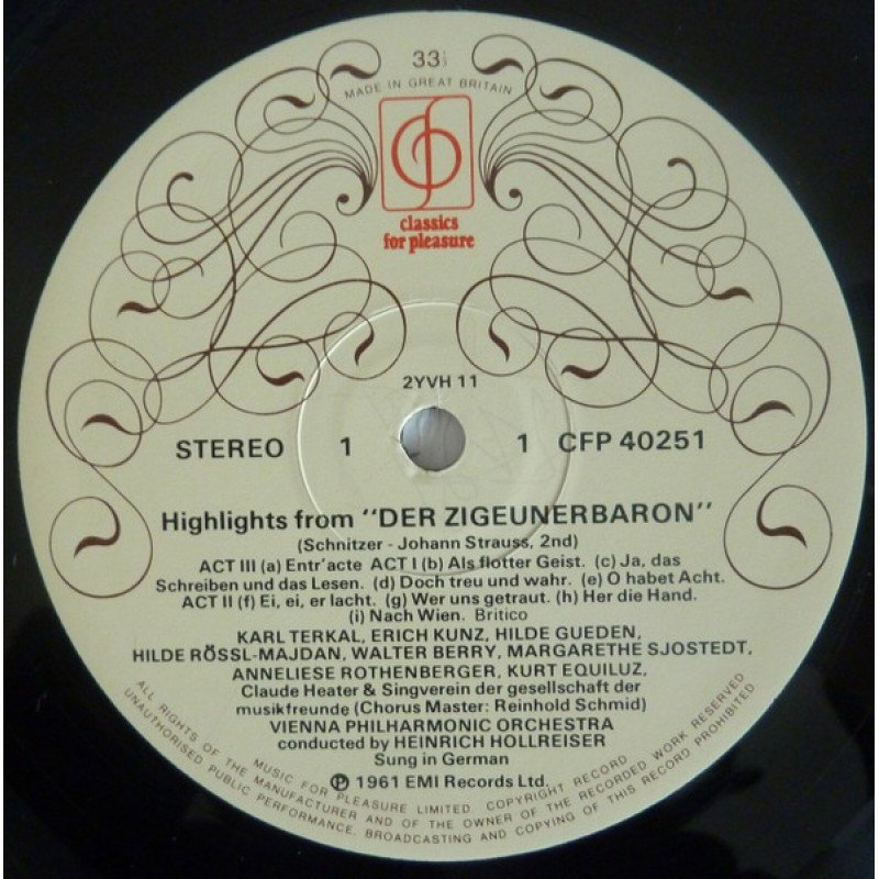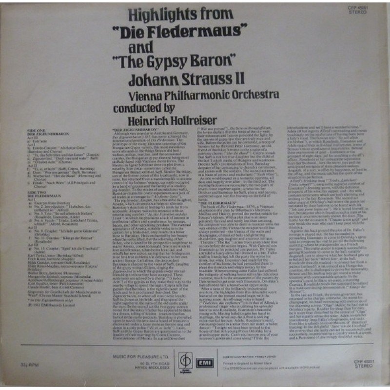 Johann Strauss II* featuring Hilde Gueden*, Anneliese Rothenberger, Karl Terkal, Erich Kunz, Vienna Philharmonic Orchestra* conducted by Heinrich Hollreiser - Highlights From "Die Fledermaus" And "The Gypsy Baron" (LP)