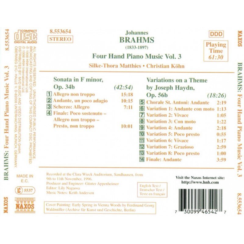 Brahms* : Silke-Thora Matthies • Christian Köhn - Four Hand Piano Music Vol. 3 (Sonata In F Minor / Variations On A Theme By Joseph Haydn) (CD, Album)