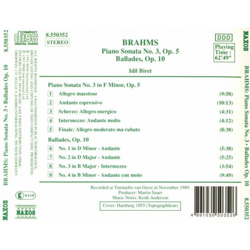 Brahms*, Idil Biret - Piano Sonata No. 3, Op.5, Ballades, Op.10 (CD, Album)