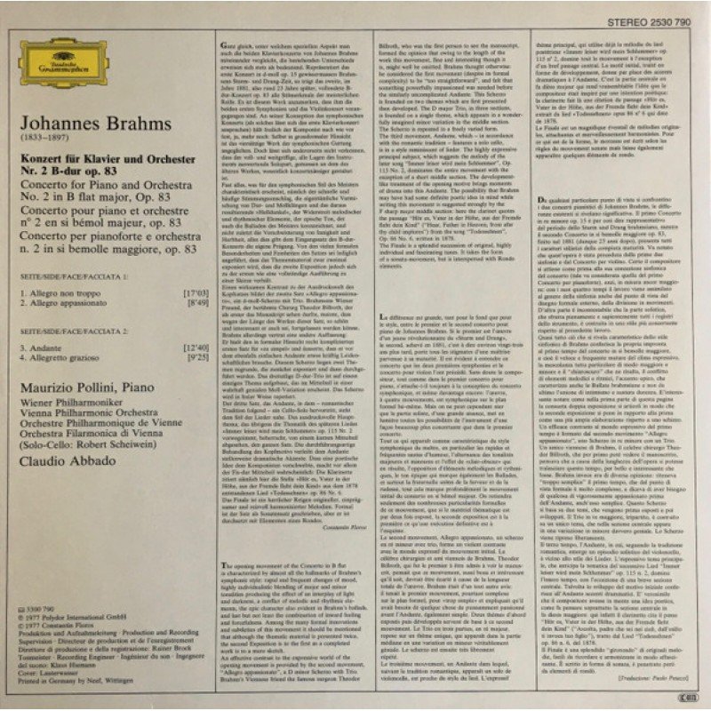 spine: Stereo Brahms: Klavierkonzert Nr. 2 · Maurizio Pollini · Wiener Philharmoniker · Claudio Abbado 2530 790