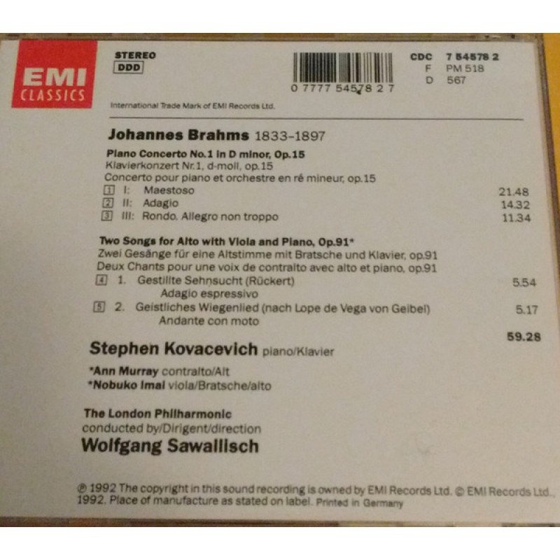 Johannes Brahms, Stephen Kovacevich*, Wolfgang Sawallisch - Piano Concerto No. 1 - Two Songs, Op. 91 (CD, Album)