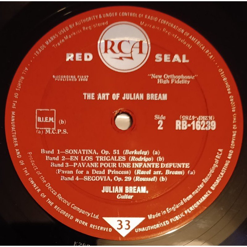 Product of the Decca Record Co. Ltd., London made from a master recording of RCA.