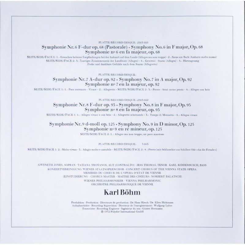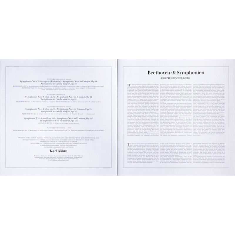 Track List | Symphonie Nr. 1 C-dur Op. 21 Symphonie Nr. 2 D-dur Op. 36 Symphonie Nr. 3 Es-dur Op. 55 »Eroica« Symphonie Nr. 4 B-dur Op. 60 Symphonie Nr. 5 C-moll Op. 67 Symphonie Nr. 6 F-dur Op. 68 »Pastorale« Symphonie Nr. 7 A-dur Op. 92 Symphonie Nr. 8 F-dur Op. 93 IX. Symphoni |