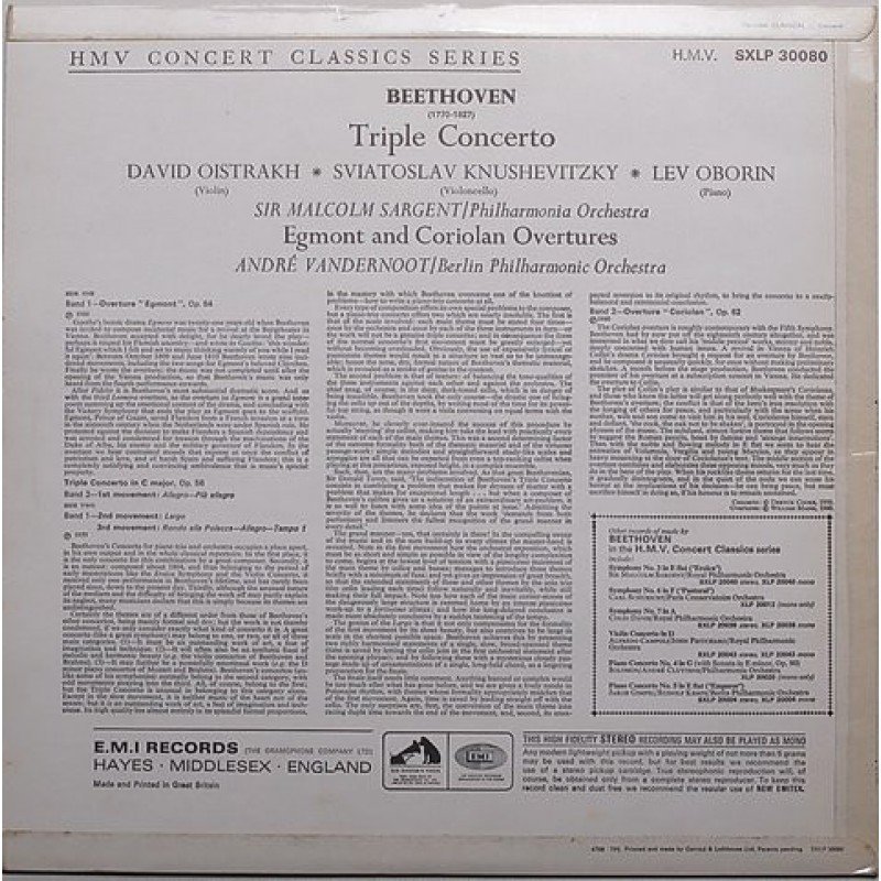Beethoven*, David Oistrakh* ✳ Sviatoslav Knushevitsky ✳ Lev Oborin, Philharmonia Orchestra / Sir Malcolm Sargent, Berlin Philharmonic Orchestra* / André Vandernoot - Triple Concerto / Egmont And Coriolan Overtures (LP, Comp)